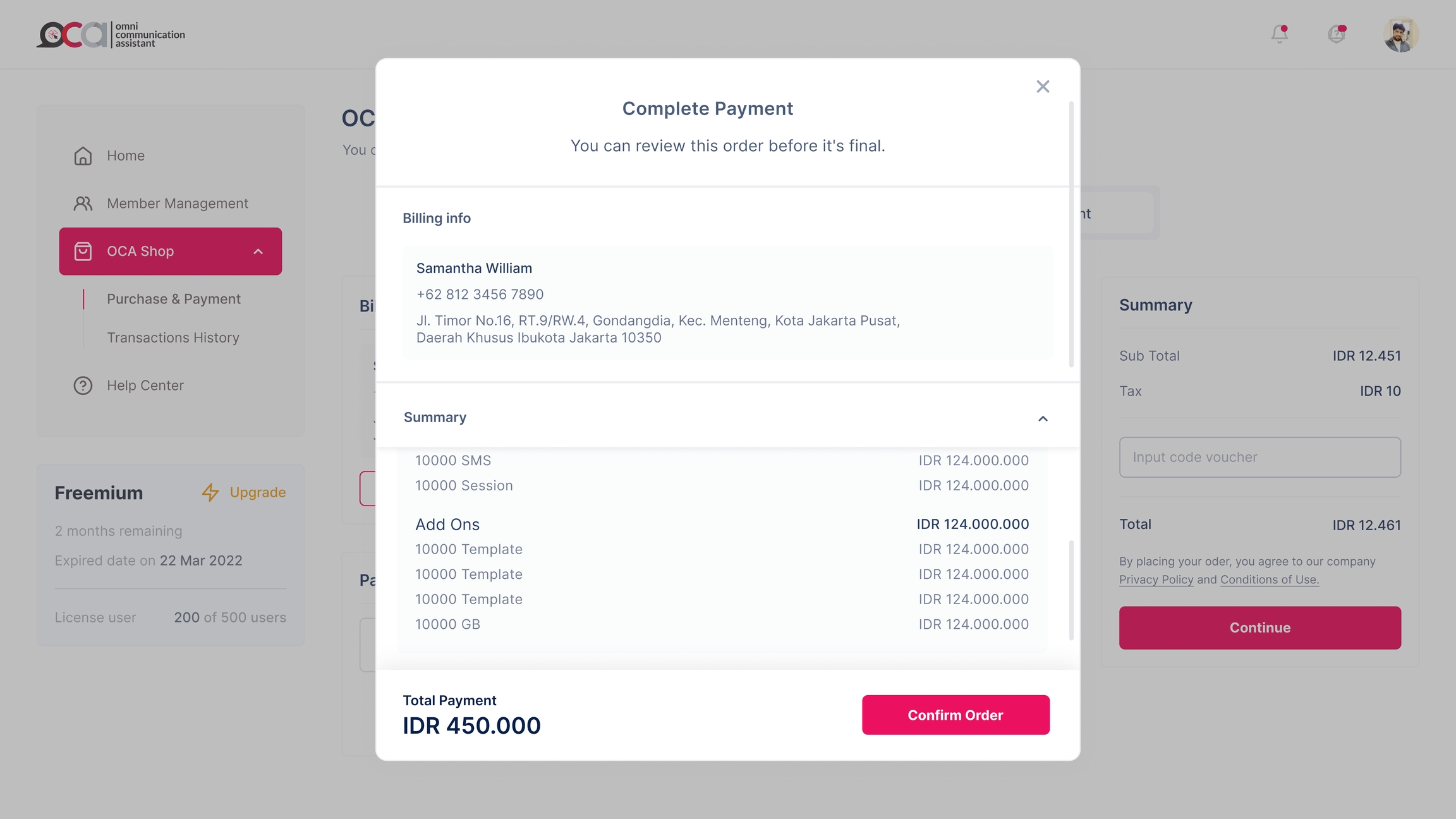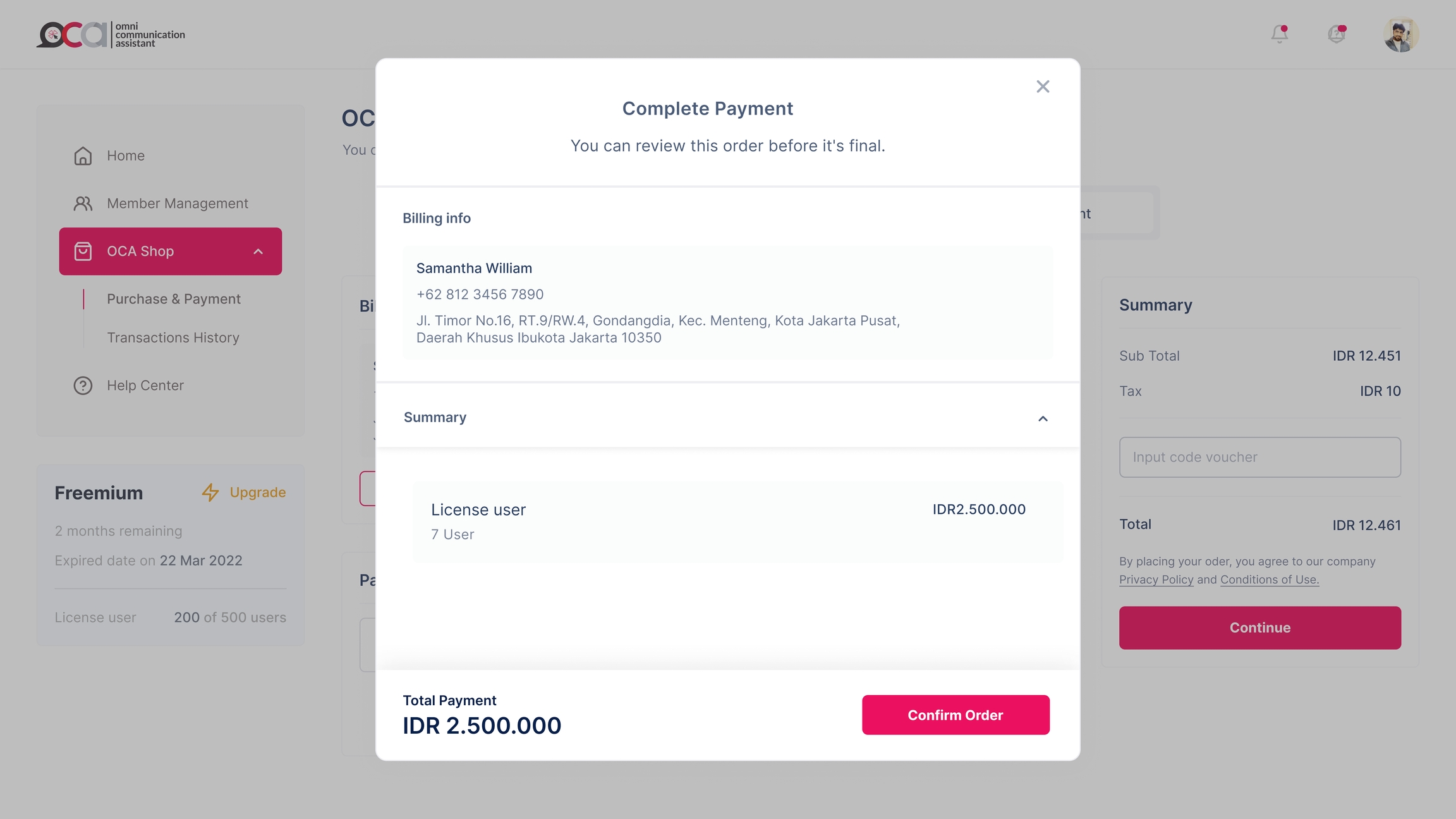 Afterward, you will be presented with the payment details. You can proceed by clicking the Confirm Order button if you have reviewed and confirmed the details.
