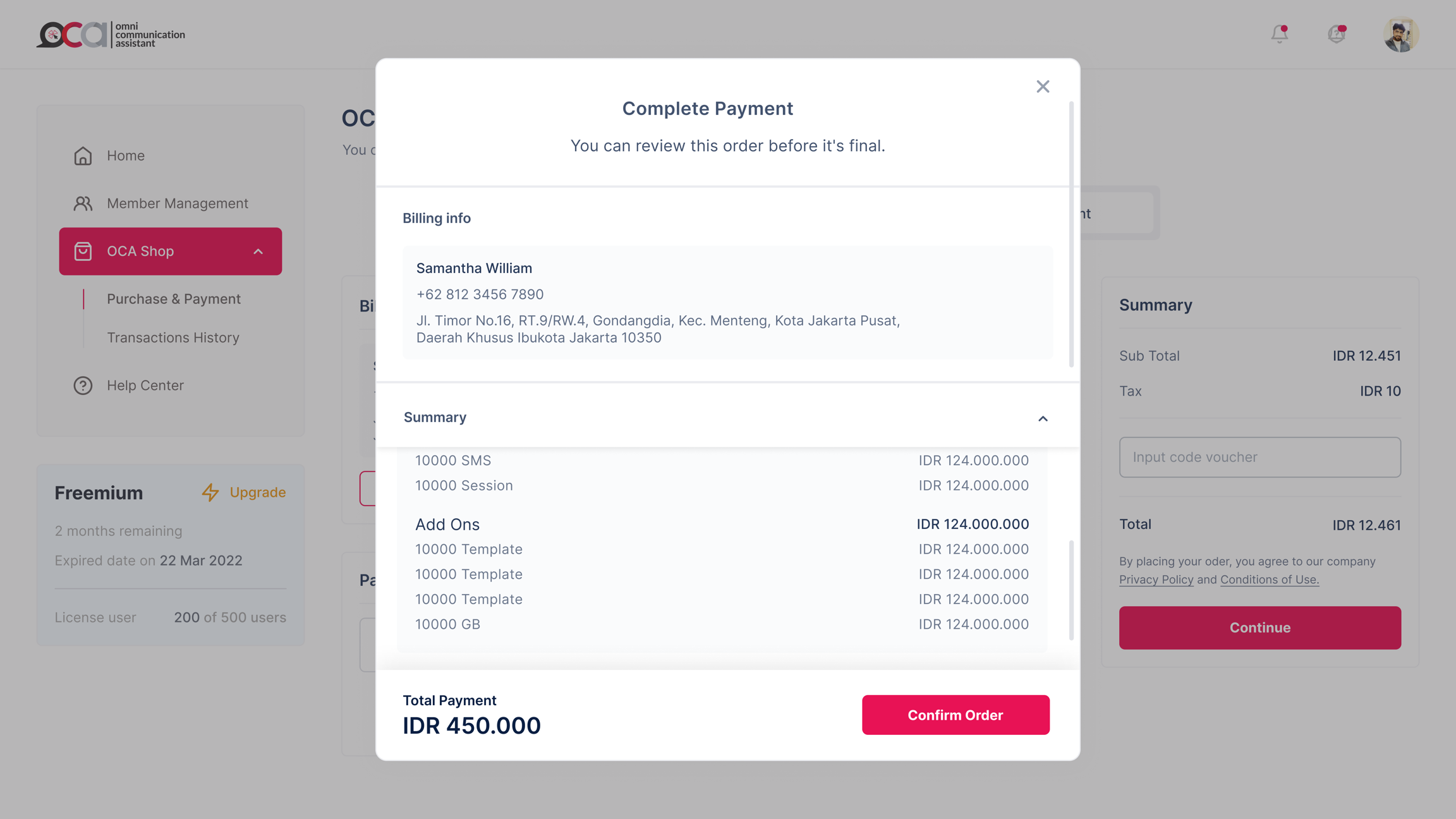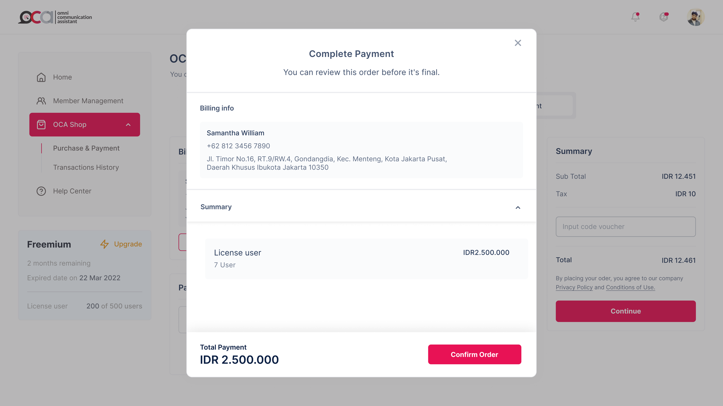 Kemudian, Anda akan dipertemukan dengan rincian pembayaran yang sudah Anda lakukan, jika Anda sudah memastikan itu dengan teliti, Anda dapat melanjutkannya dengan cara menekan tombol Confirm Order.