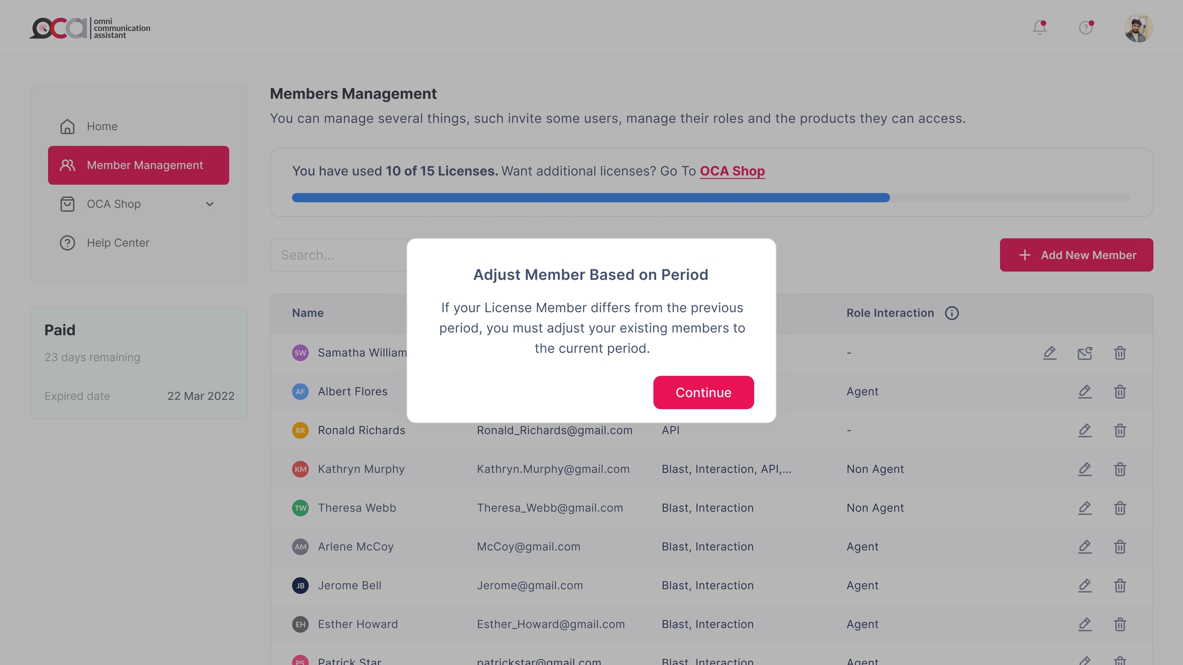 To access Edit License Member, complete the Purchase and Payment process and wait for verification. You can only view the OCA Shop page if you do not meet these steps.