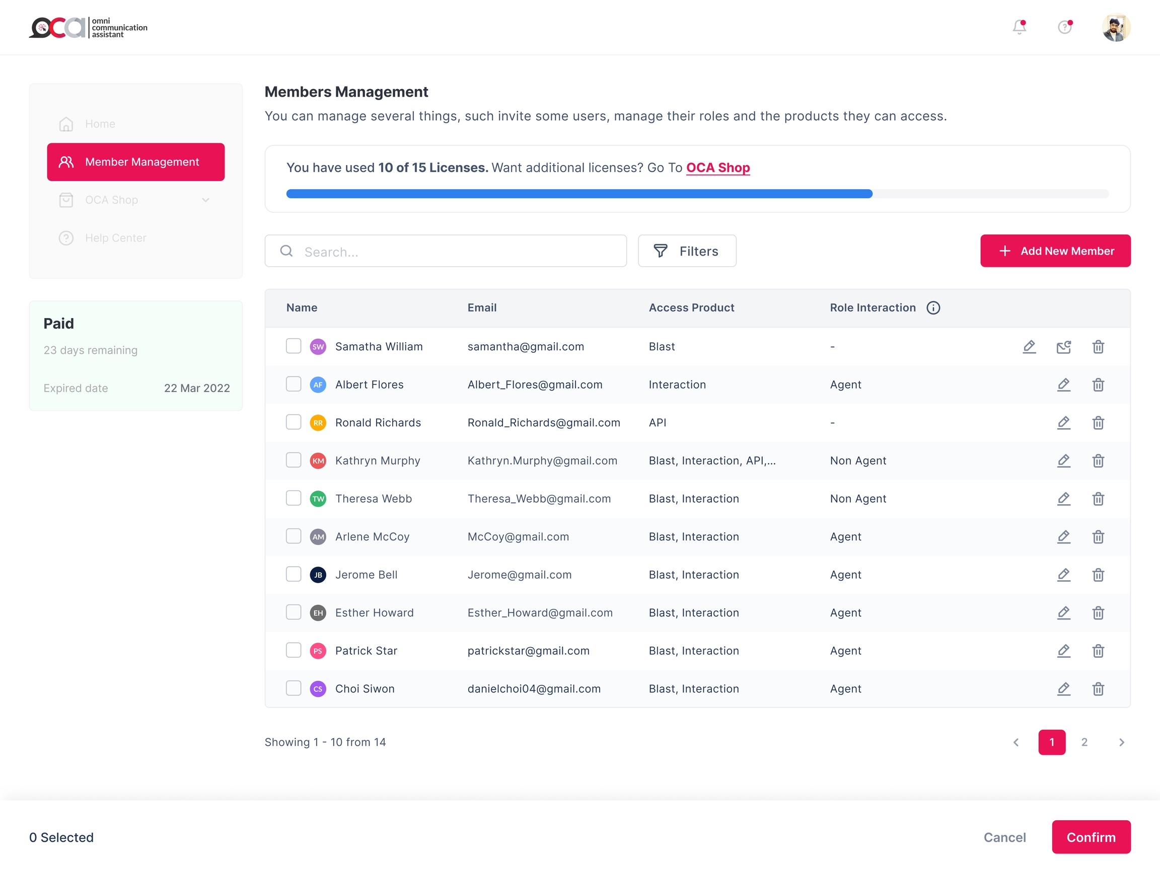 Jika Anda sudah menyelesaikan pembayaran hingga pembayarannya terverifikasi, Anda akan secara otomatis diarahkan dan masuk ke menu Member Management. Pada fase ini, semua fitur akan kami nonaktifkan sampai Anda selesai memilih member yang akan diberikan license.