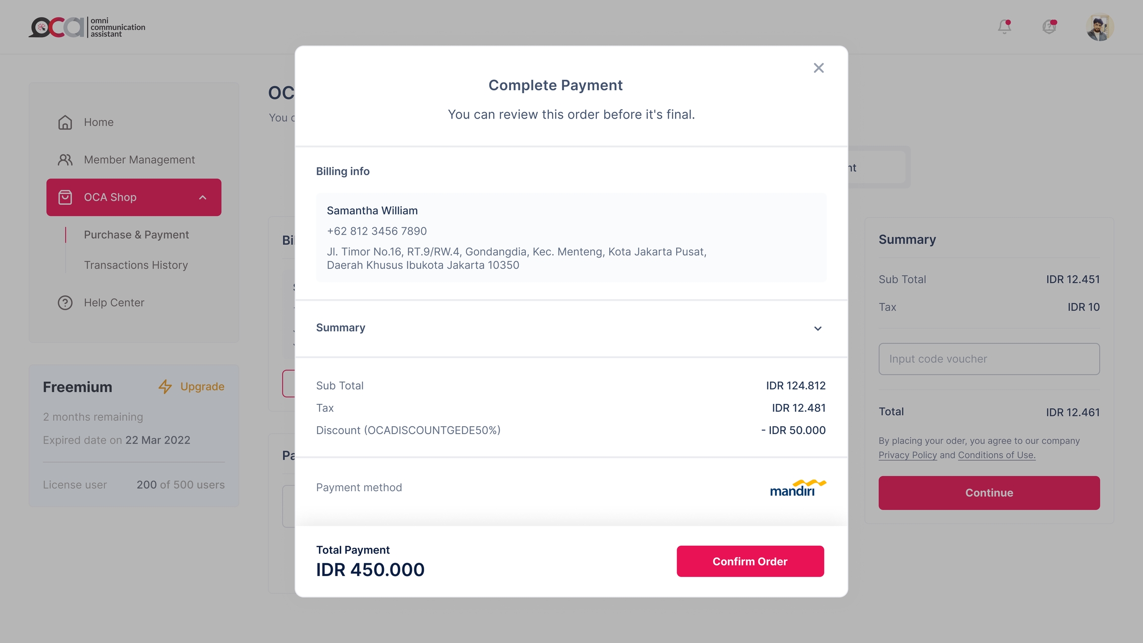 Kemudian, Anda akan dipertemukan dengan rincian pembayaran yang sudah Anda lakukan, jika Anda sudah memastikan itu dengan teliti, Anda dapat melanjutkannya dengan cara menekan tombol Confirm Order.