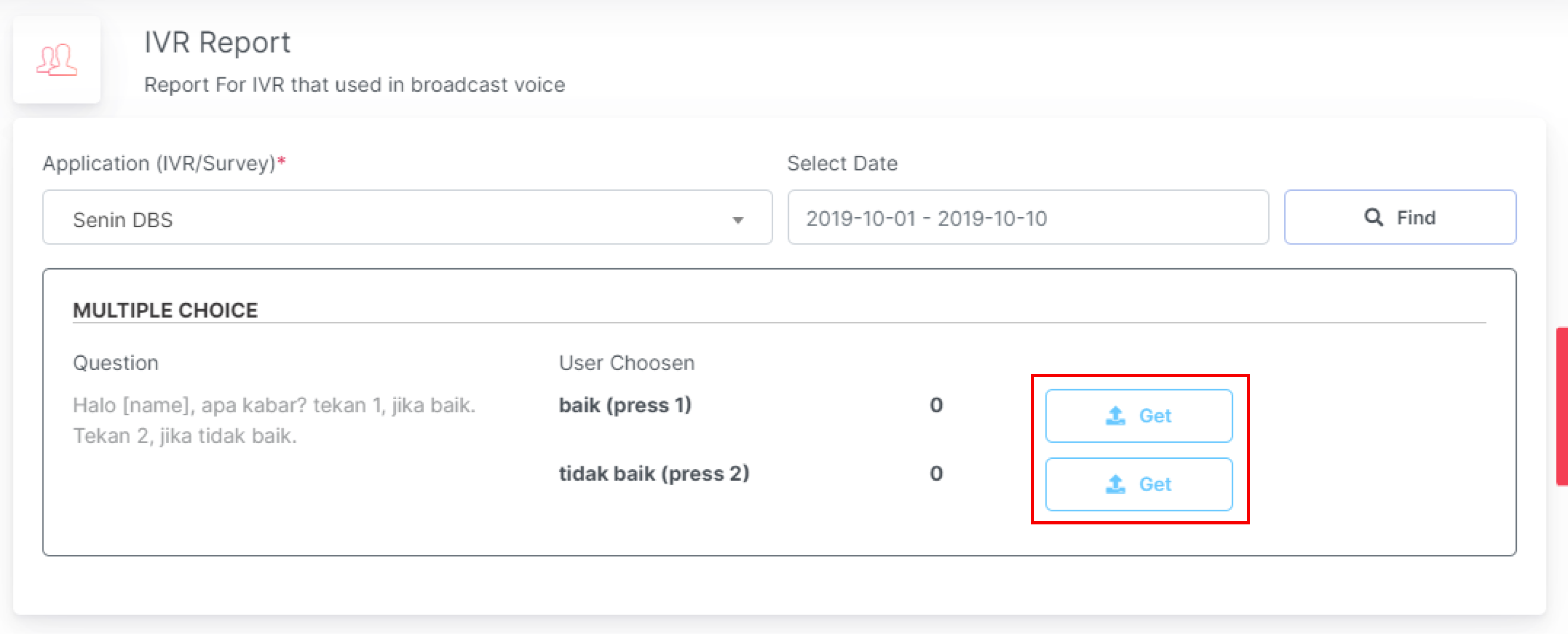 Click **Get** to download the report from the selected IVR broadcast.