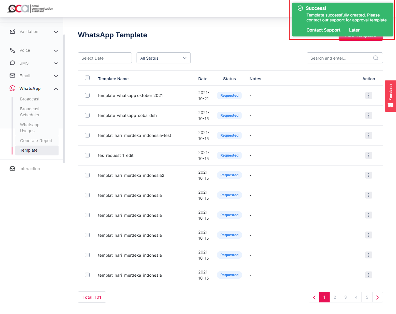 We will check the WhatsApp template you made, and our team will confirm it. You can use the new WhatsApp template after we verify it.