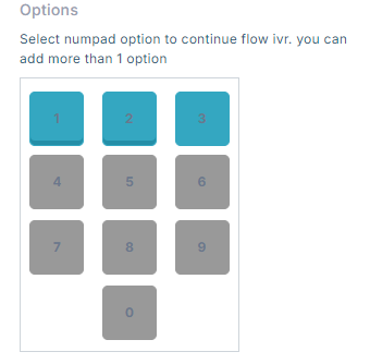 Pada bagian **Options**, Anda dapat memberikan pilihan kepada pelanggan terhadap alur percakapan IVR. Klik angka yang Anda inginkan sebagai respon yang akan dimasukkan oleh pelanggan nantinya.