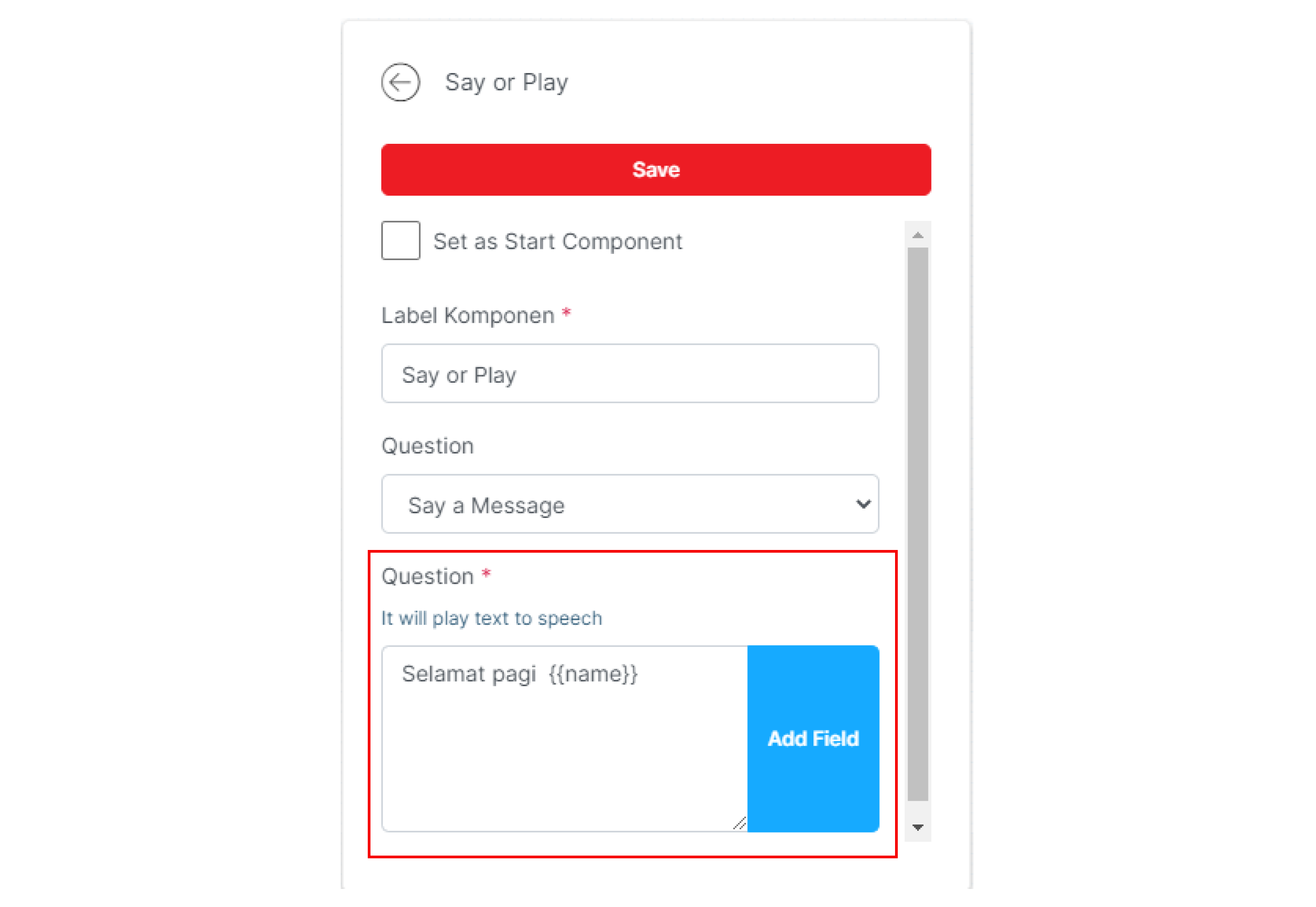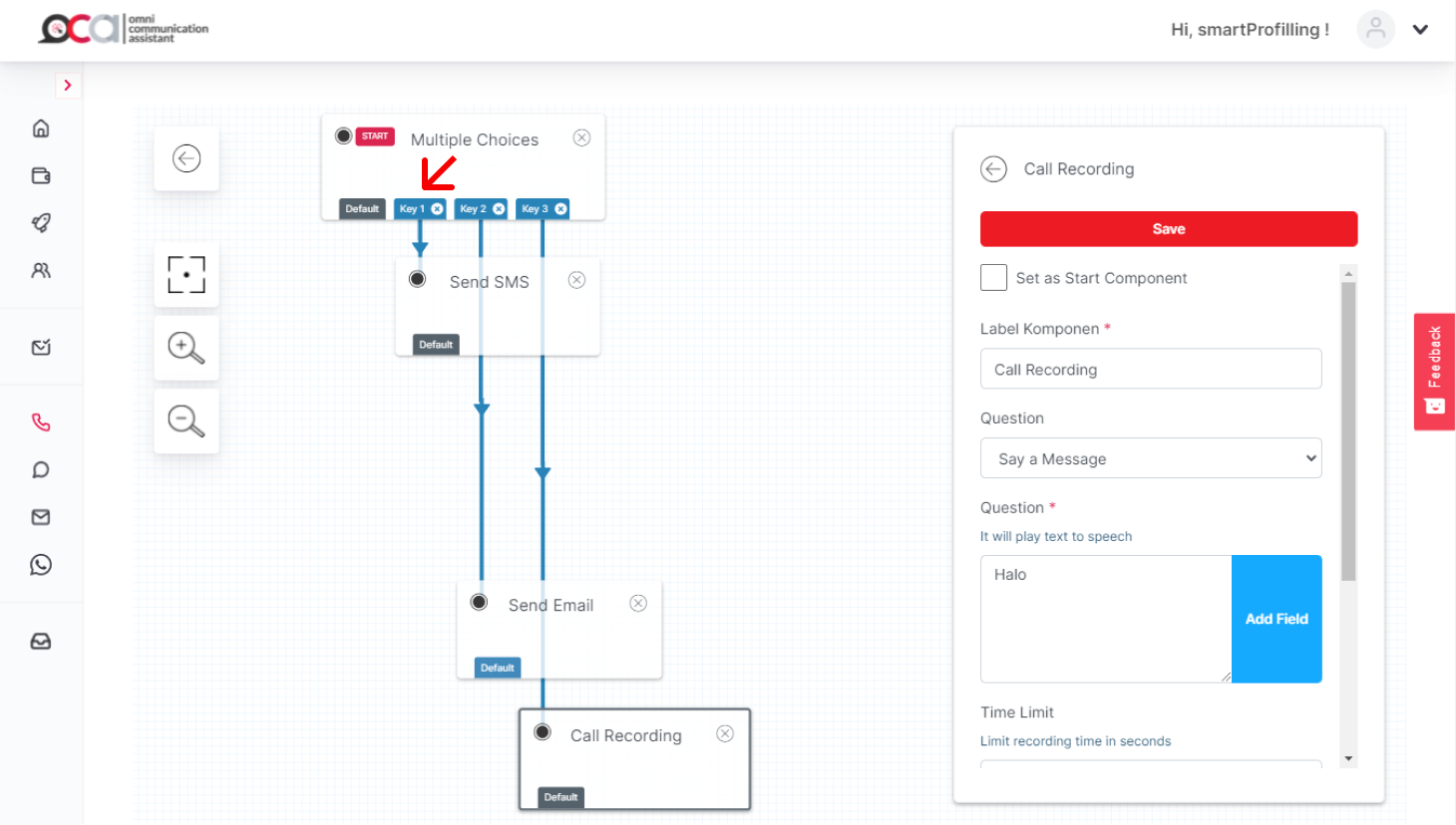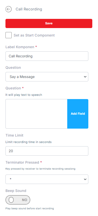 Komponen Call Recording dapat digunakan untuk merekam jawaban pelanggan dalam bentuk audio.