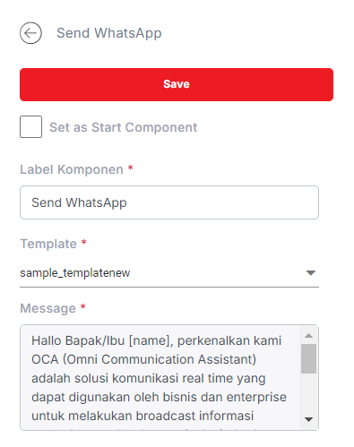 Pilih **Template** WhatsApp Anda dan isi dari pesan template dapat Anda periksa kembali pada bagian **Message**.