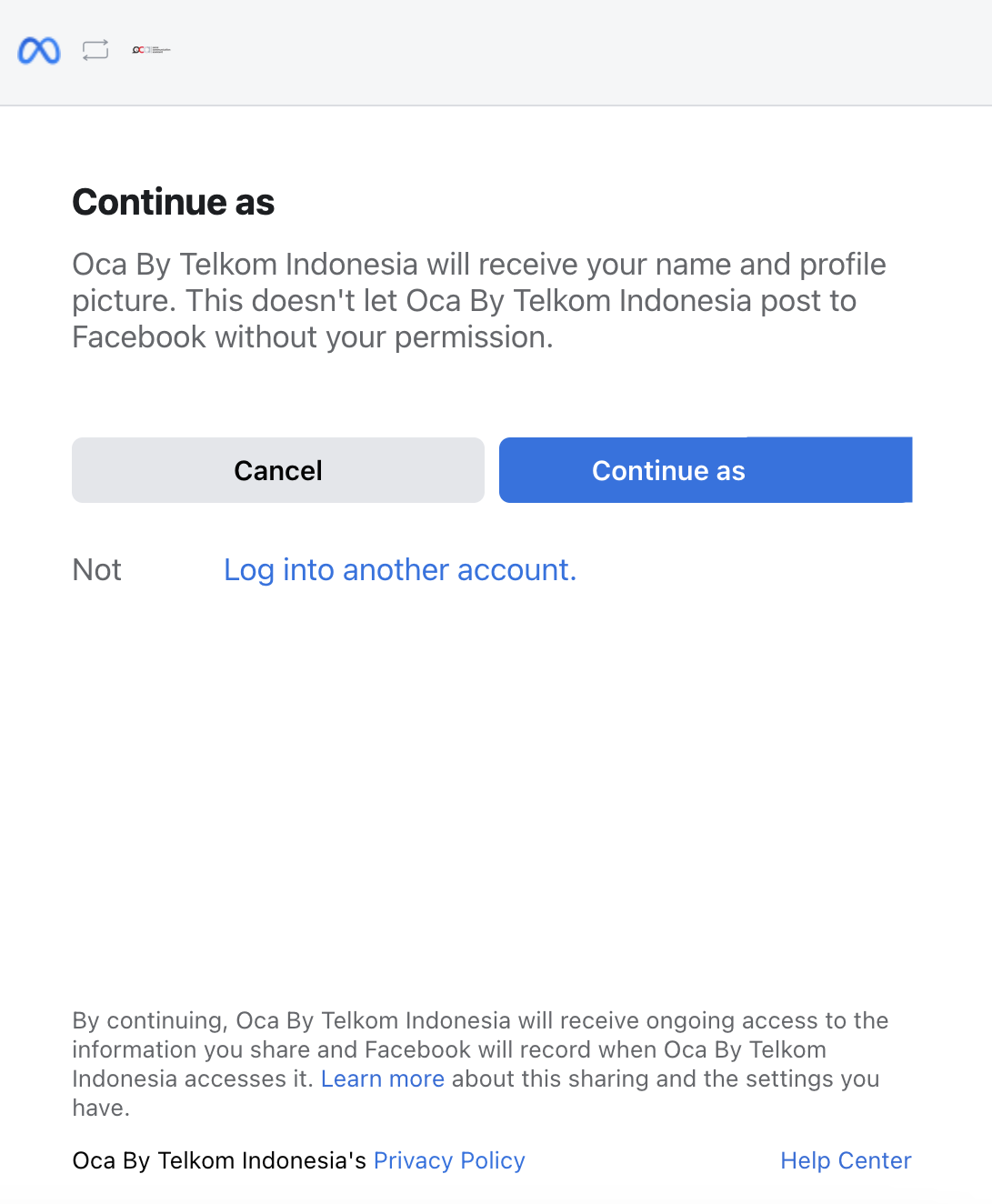Next, a "Login with Facebook" section will appear. Click the "Continue as" button for your username.