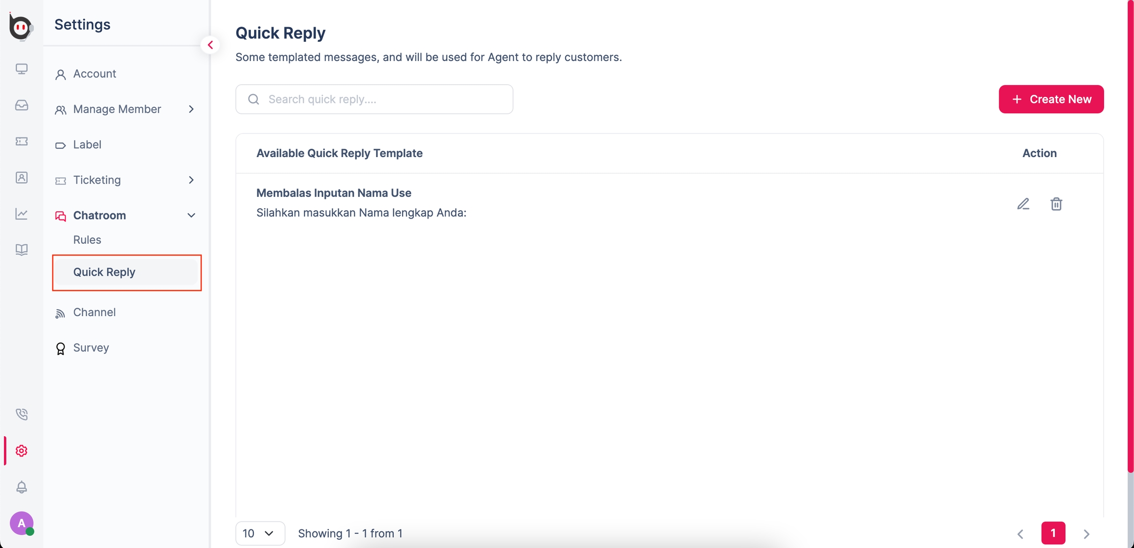 You can create and register multiple quick replies in template messages on the Quick Reply page. Agents can later use these to reply to several short messages without the need to retype them.