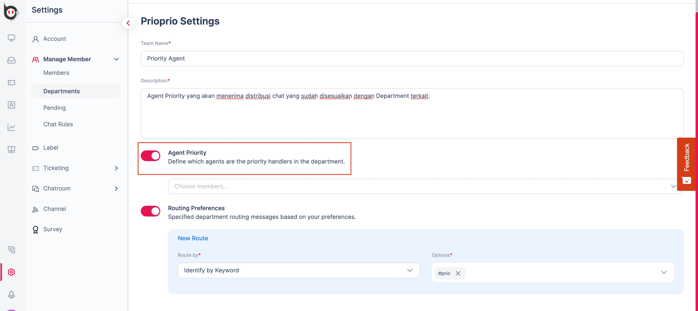 Agent Priority Department Assignment allows SPV to prioritize agents receiving chat distribution based on routing from the relevant department.