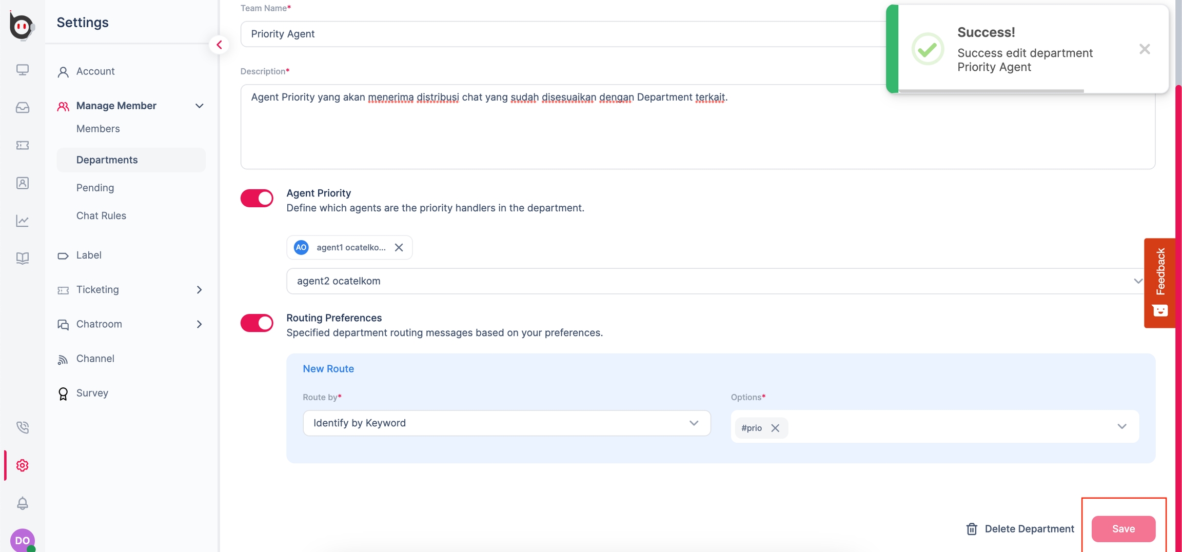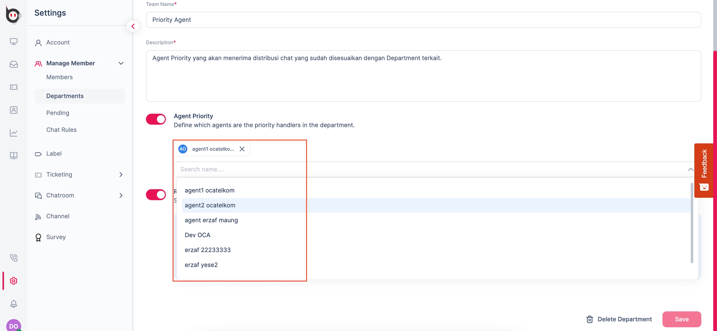 Agent Priority Department Assignment