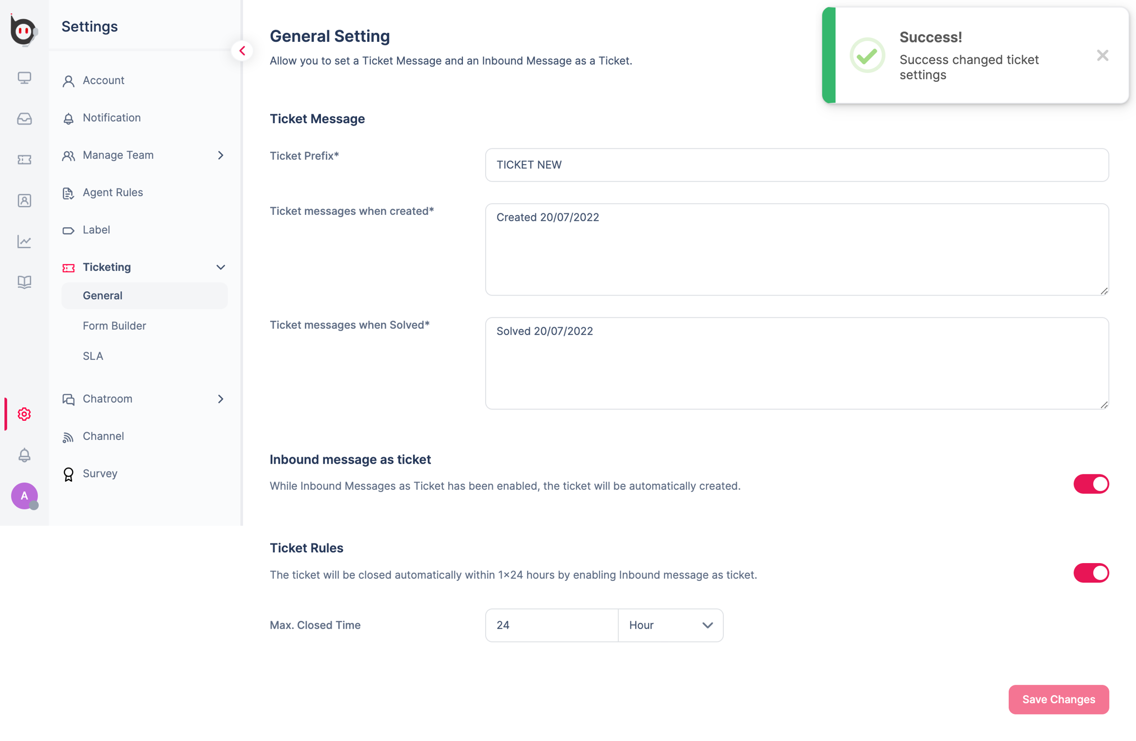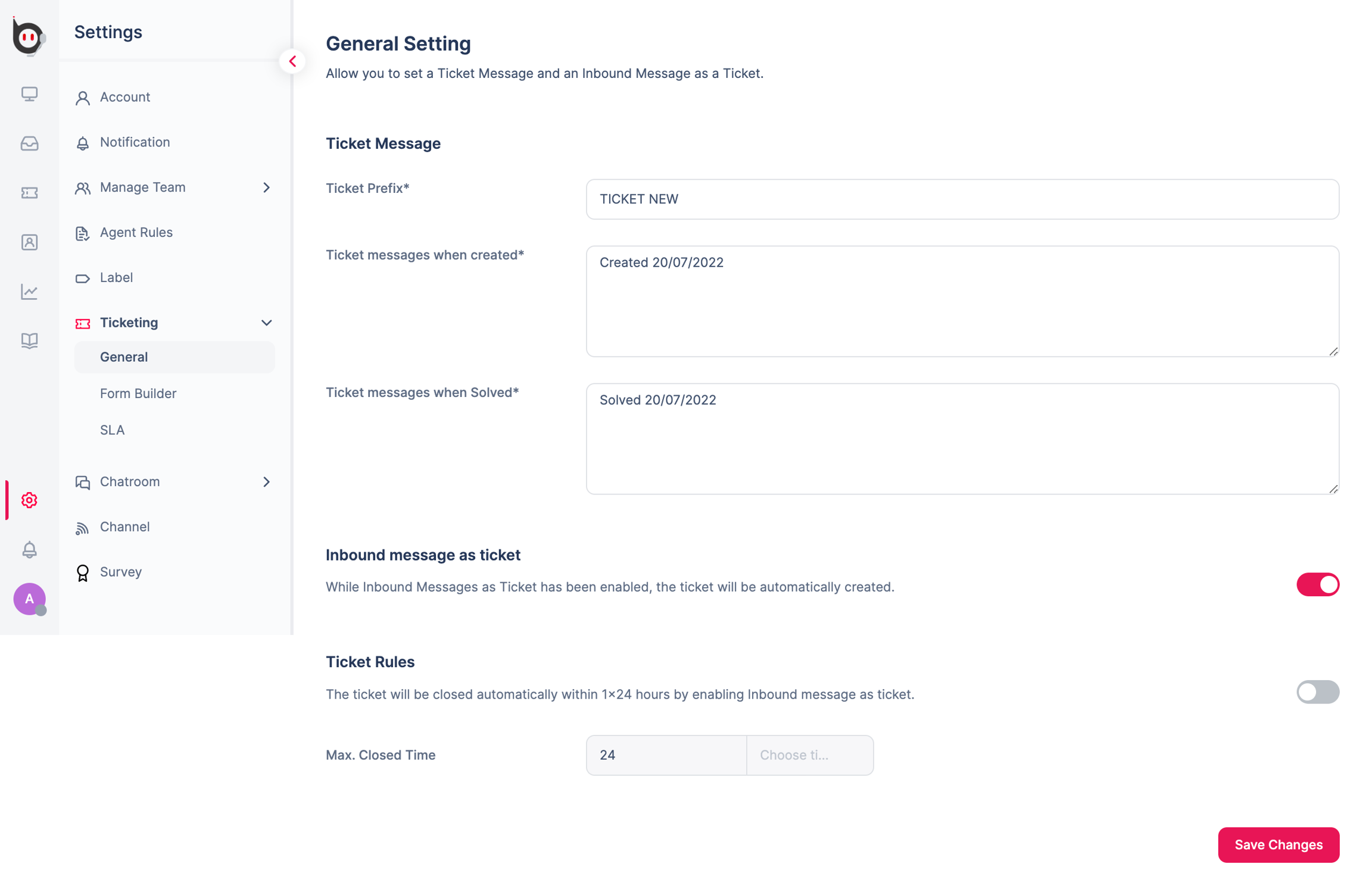 As for Ticket Rules, this is like adding an additional option. When this feature is activated, available tickets will automatically close within 24 hours.