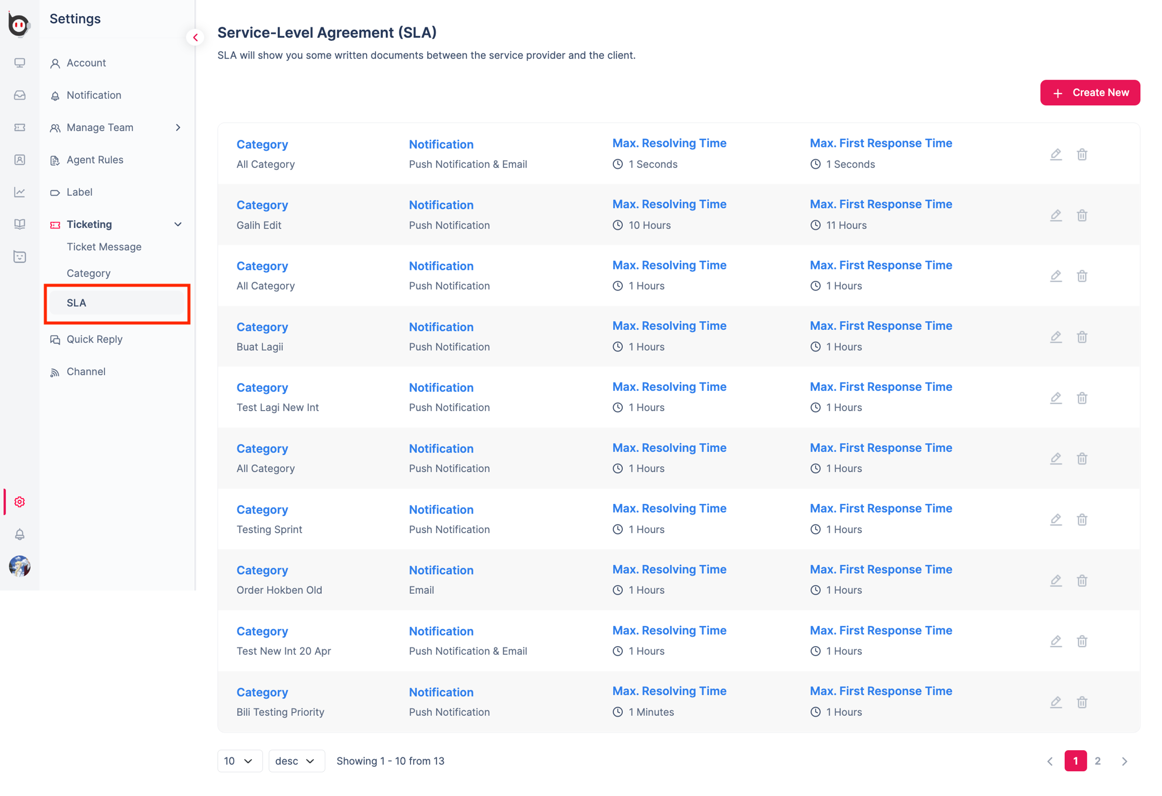 The Ticketing Menu has several tabs, each of which has its own function. Starting from Ticket Messages, Category, and also SLA.